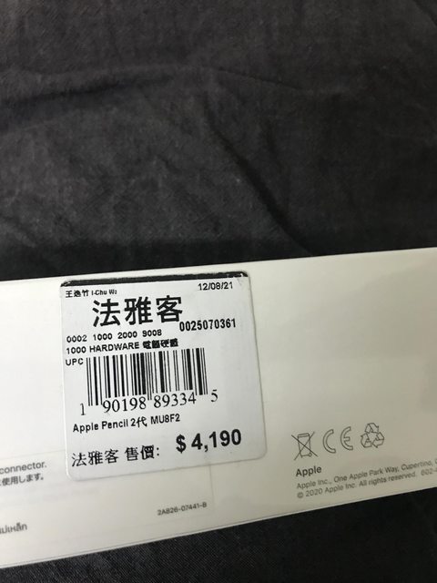 全新未拆盒 Apple Pencil(第二代)/$3000/2022購至於法雅客,發票已丟,但標籤仍在
