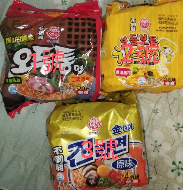 8.韓國泡麵剩1號有3袋,2號2袋,3號1袋,全部1袋都100元,有效期限2024/12/17