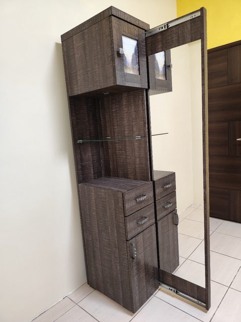 二、穿衣鏡櫃(角落櫃)(長36高189深48公分)9成新。鏡面寬35公分高150公分。