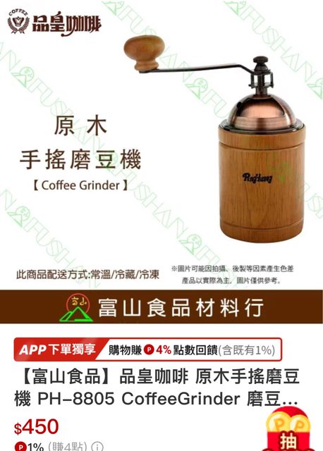交易類別:出售 品皇全新原木手搖磨豆機 售250元