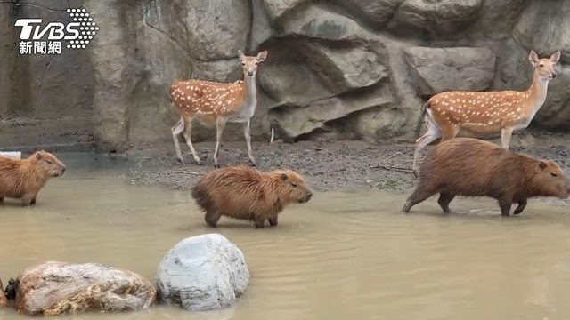 頑皮世界成「汪洋島國」!保育員滑竹筏餵食動物 水豚超Q模樣曝