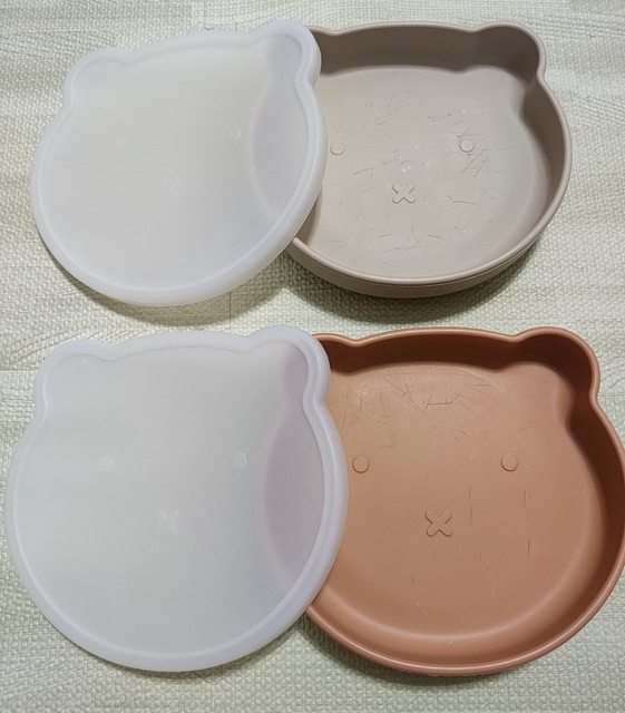 6、Rain.b寶寶餐盤2個,附蓋可防塵,台灣品牌非雜牌,美國FDA檢驗合格,有使用痕跡