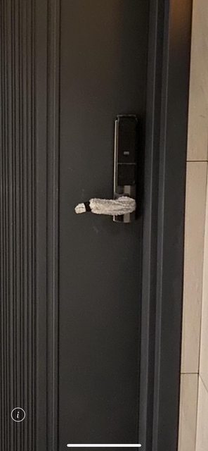電子鎖為建商附贈,可以使用密碼、卡片開鎖,牌子好像是東隆吧,因為自己已有想要的品