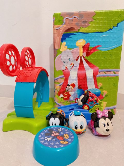 -內含4台迪士尼角色小汽車、一片遊戲墊、1組遊戲軌道