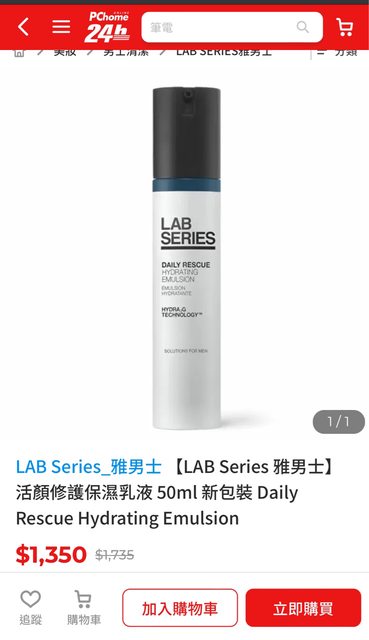 交易物品/金額/說明: 【LAB Series 雅男士】活顏修護保濕乳液 50ml 新包裝 Daily Re