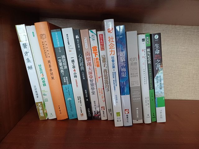 照片中的二手書,任選三本交換一瓶愛之味分解茶