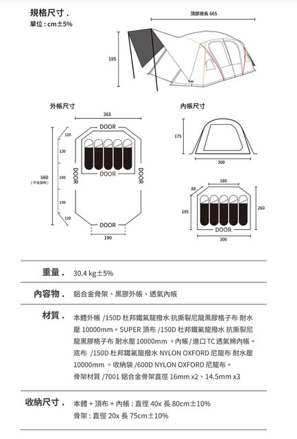 11.二手努特熊武士150D鋁合金黑膠一室一廳帳篷(白)$14000