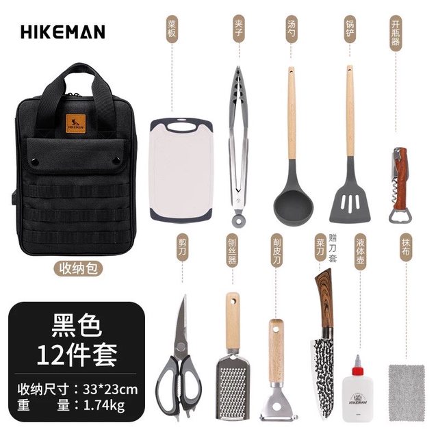 8.全新Hikeman戶外廚房用品組附收納袋12件(黑)$750