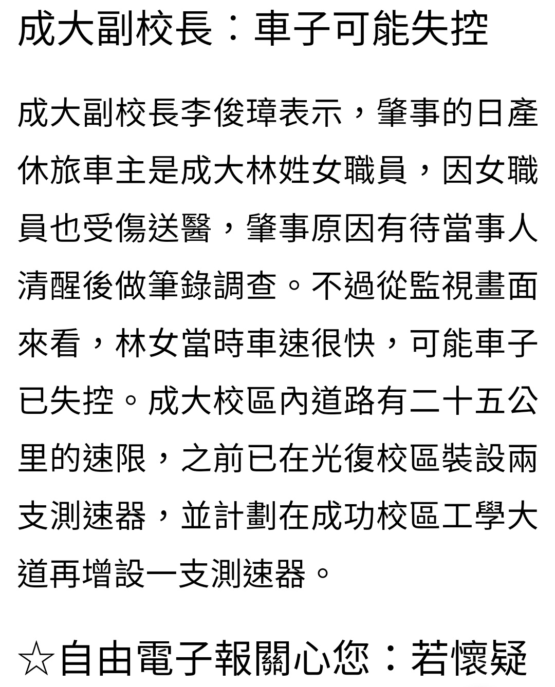 噓 z996z1104: 成大是腦癱了嗎,這跟測速器有什麼關聯,難道裝了就不 08/14 02:32