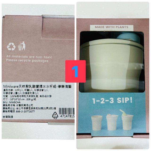 1、商品名稱:miniware 天然聚乳酸愛喝水水杯組(寧靜海藍),全新一組280元。