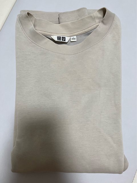 Uniqlo AIRism棉質寬版圓領T恤米色L號