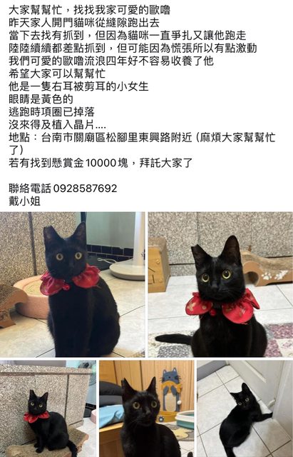 標題[失蹤] 協尋黑貓