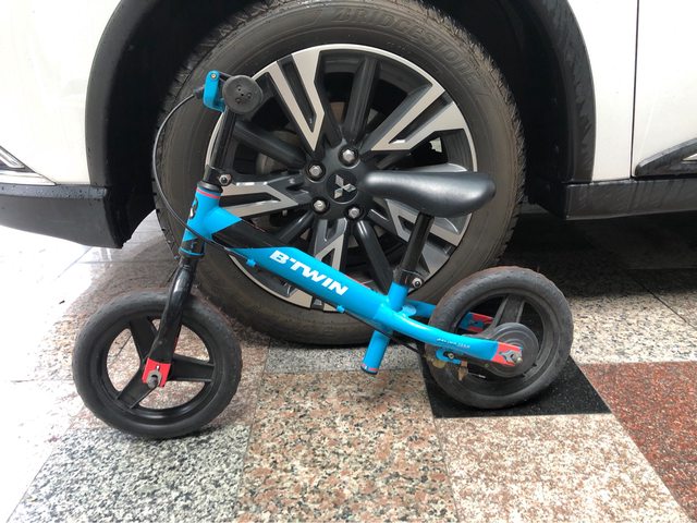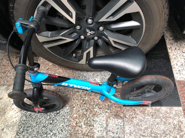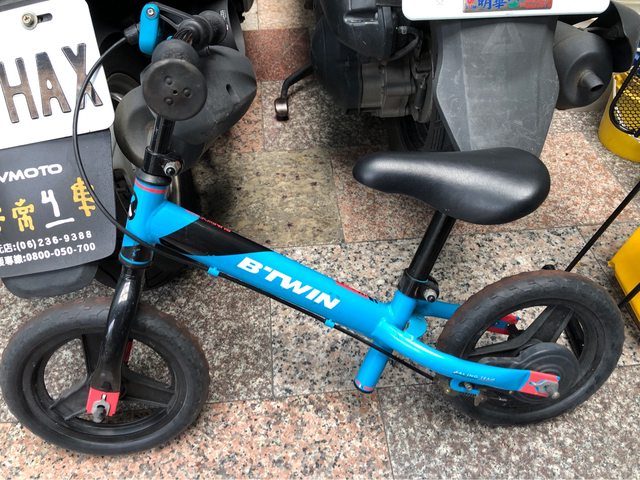 迪卡儂滑步車 售500 7成新,適合2-4歲,也差不多閒置3-4年 輪胎紅紅的是因為運動公園的紅土