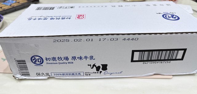1.初鹿牧場 原味保久乳一箱(24瓶/一瓶200ml)