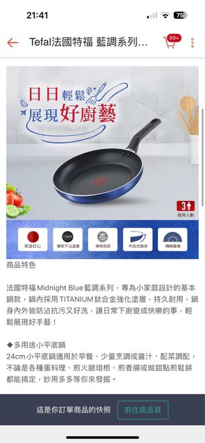 4、全新Tefal法國特福藍調系列不沾平底鍋 24cm