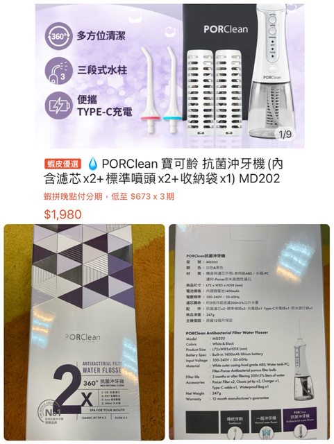 2.PORClean寶可齡抗菌沖牙機MD202