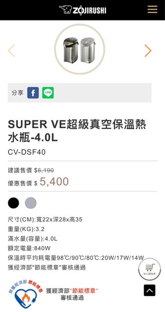 2.象印4L熱水瓶CV-DSF40(恰中)