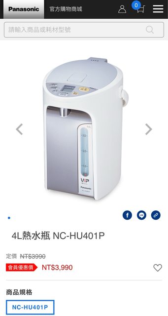 1.Panasonic 4L熱水瓶NC-HU401P(暫售)