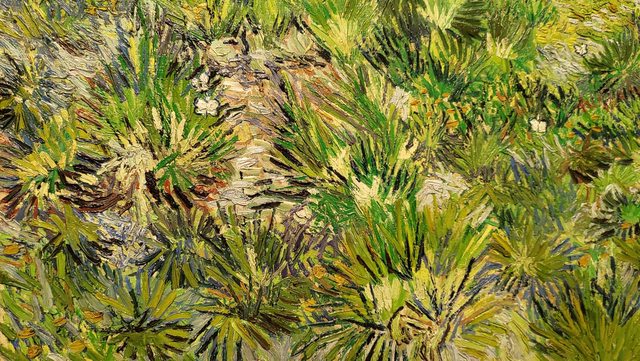 此時的梵谷心中有著對自然的熱愛,草地顏色繽紛但並不混亂