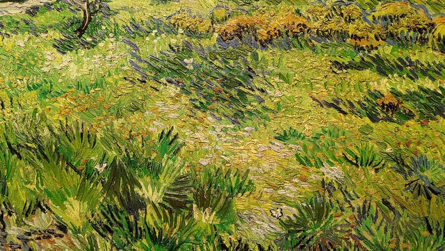 梵谷生命中最後一年在療養院創作的〈長草地與蝴蝶〉