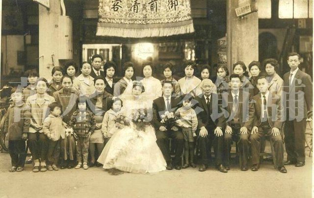 舊永瑞珍第二代張再興結婚時合照,綵牌上繡「御前清客」(圖上方)。依民族音樂學家