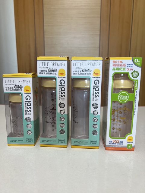 黃色小鴨是我用過玻璃大奶瓶中,最輕量的,大奶瓶喝得久,媽媽寶寶拿都適合,手不酸