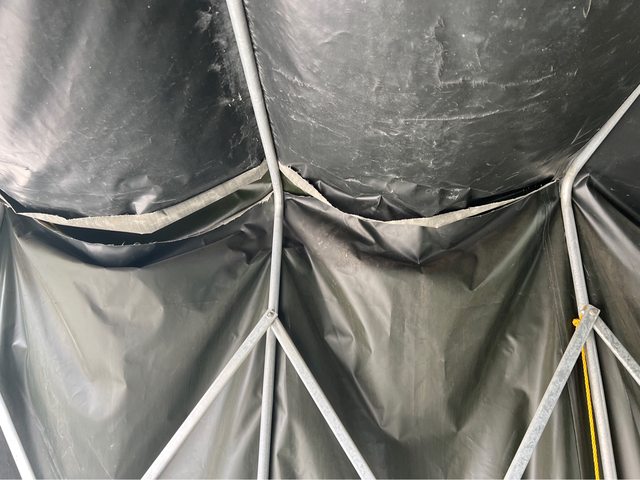 如圖原本的帆布已破損,所以在上面又補一層新布,新布剛換幾個月