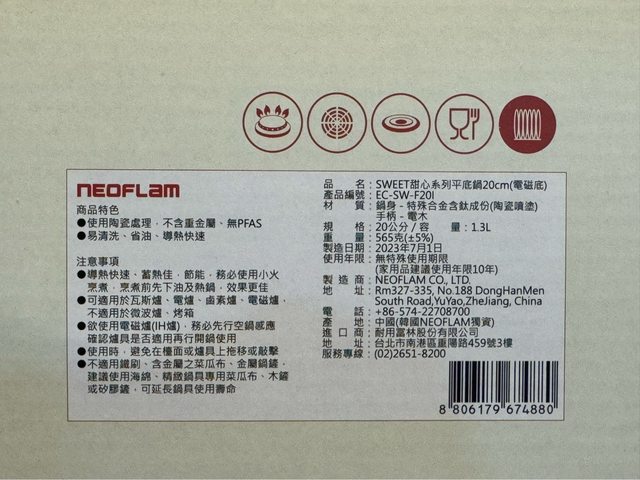 全新Neoflam 20公分平底鍋(電磁底)*1