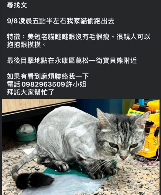 推 yujw206: 高調,圓圓也還沒找到,希望貓貓們平安回家! 09/11 17:35