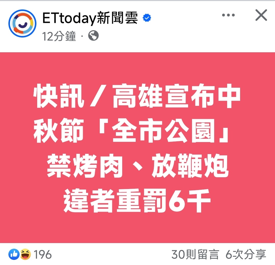 標題[新聞] 中秋夜10點後禁放煙火 台南鎖定4熱區稽查開罰