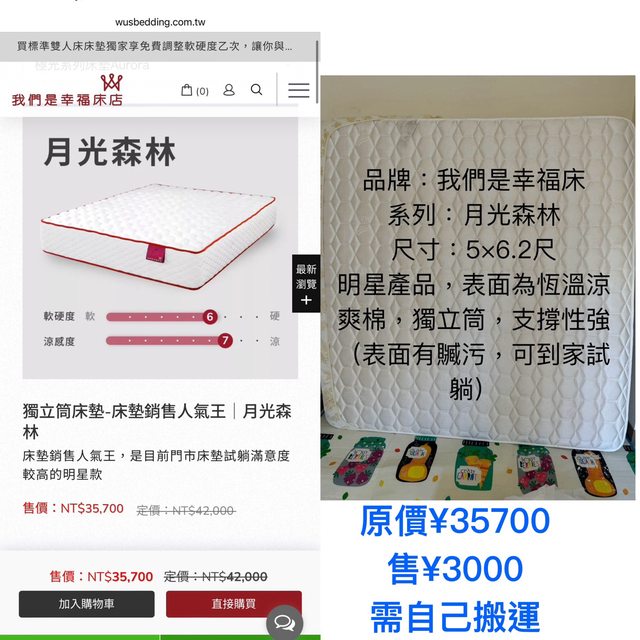 標題[交易] 售二手傢俱、雙人加大床墊