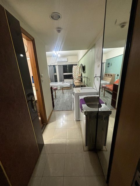 接線)、小冰箱、冷氣、乾濕分離衛浴、熱水器、置物櫃兩個、流理臺、除濕機、沙發、