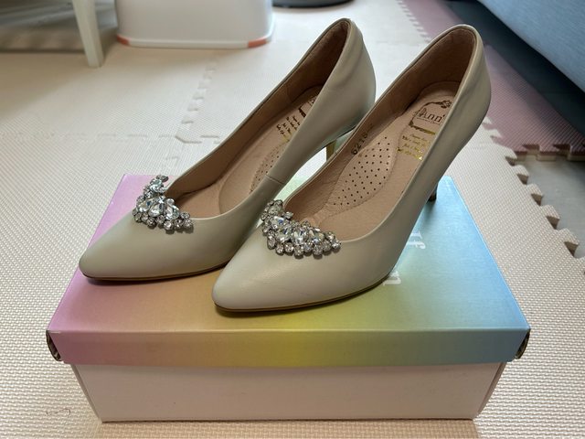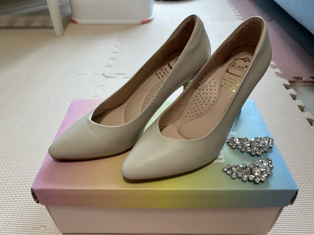 Ann米白高跟鞋$300 尺碼37 僅穿2次 贈裝水鑽裝飾夾(也可自由夾在其他鞋子上)