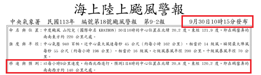 → njunju: 10/1是預測平均4-5 峰值6-7 但可能在暴風半徑內 但氣象署 10/03 22:01