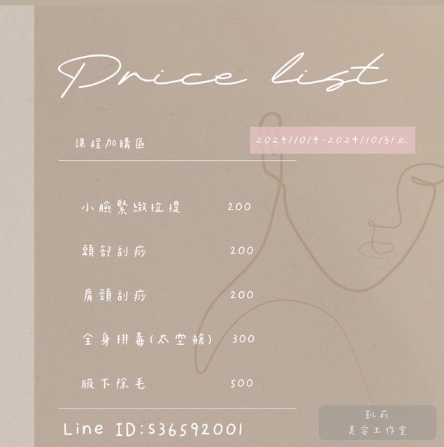 以上均包含卸妝洗臉、去角質、臉部按摩、粉刺深層清理、敷臉