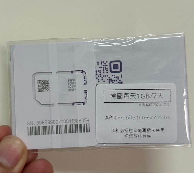交易物品/金額/說明: 韓國7天每日1G網卡