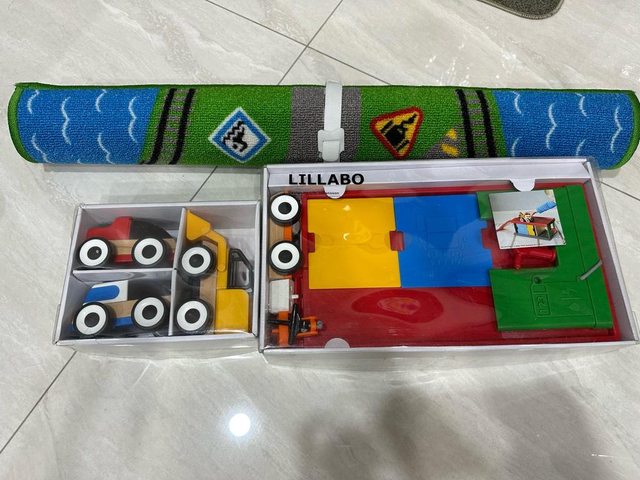 IKEA 木製玩具車及地毯,少玩,整體8成新以上。