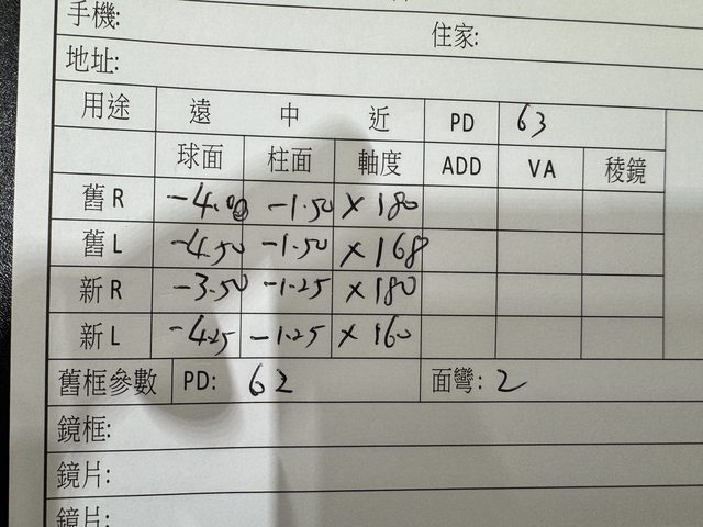 老闆改用傳統的方式測試(我的度數難抓)