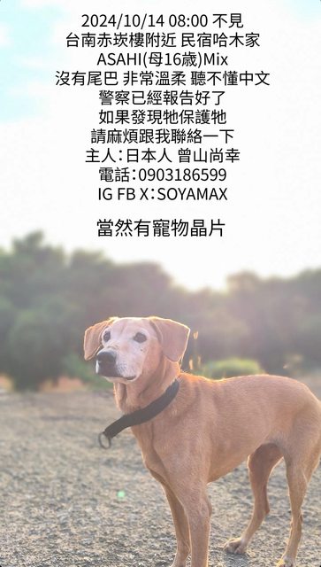 標題[失蹤] 赤崁樓附近了老犬走失