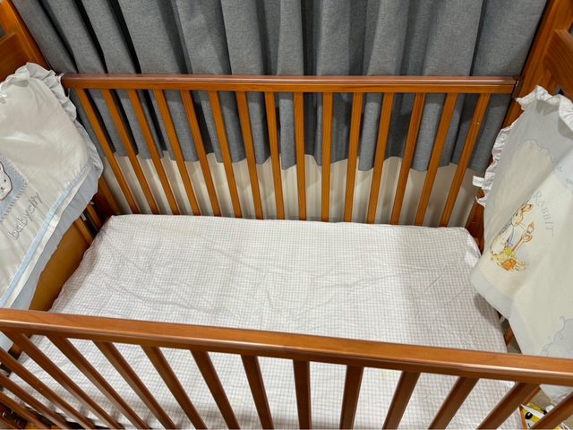 彼特兔實木嬰兒床,附床圍、床墊