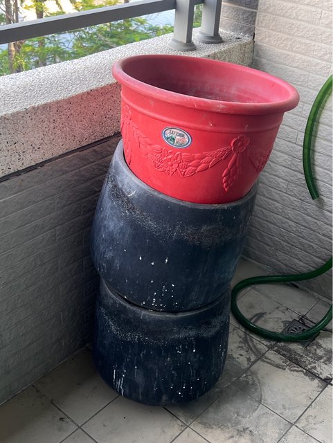 因整理陽台用不到的盆栽 水泥盆五個