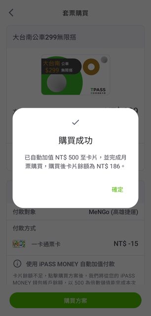 標題Fw: [心得] iPass MONEY 手機購買MeNGo月票紀錄