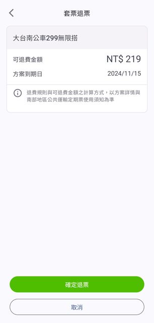 退票介面(免扣手續費 台南299一天-80)