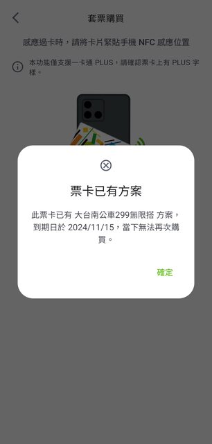 不能重複購買多種套票