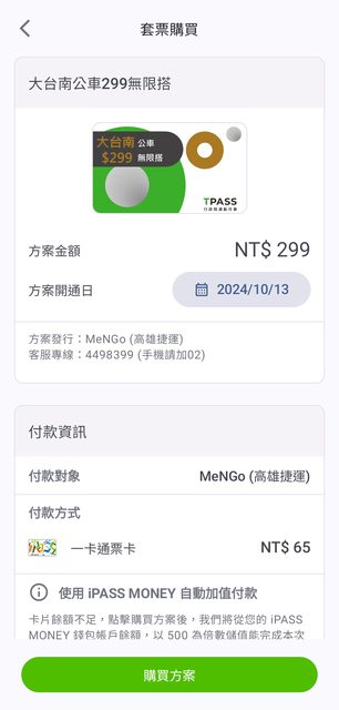 iPass MONEY自從10月的某一次更新之後就可以直接買買南高屏月票了