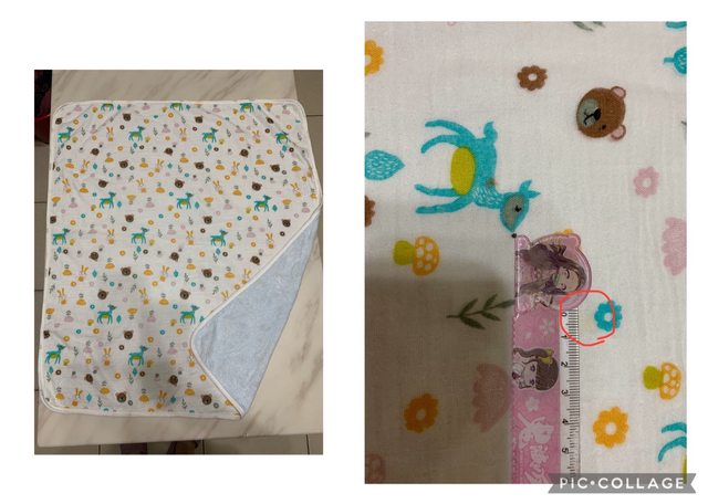 尺寸實際測量大概80cm*70cm,有一個約1公分的不明顯黃漬,已清洗曬太陽