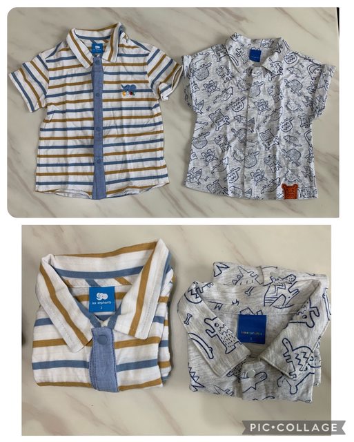 B.恐龍吊帶褲:2號,吊帶釦子左右剩各1個,寶寶長大可手縫移動位置繼續穿,備釦還