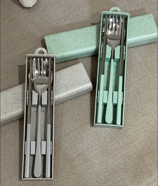 7) 台泥不銹鋼餐具組(綠色&灰色)/ 50元(組)/全新,沒有紙盒