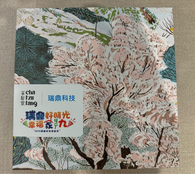 禮盒正面側邊有公司名貼紙