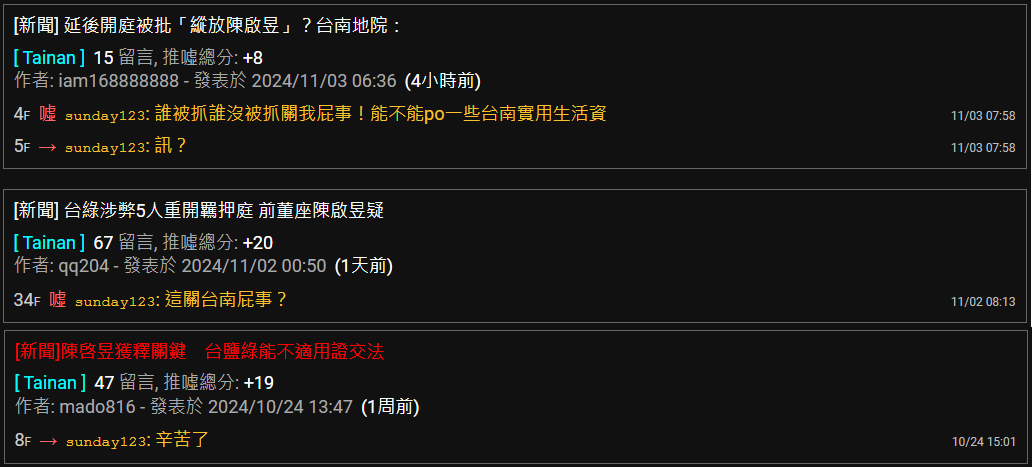 噓 sunday123: 誰被抓誰沒被抓關我屁事!能不能po一些台南實用生活資 11/03 07:58